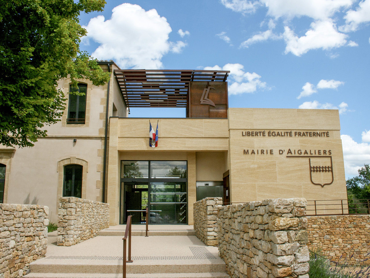 L’agence est intervenue dans le cadre d’un appel d’offre en marché public pour la rénovation complète de la Mairie d’Aigaliers proche d’Uzès et la création d’une extension.
