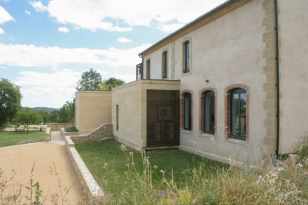 Le bâtiment a conservé ses marques d’origines et l’extension vient se greffer sur la partie latérale. Elle est construite en pierre de Vers en rappel des encadrements de l’existant mais dans une forme résolument contemporaine.